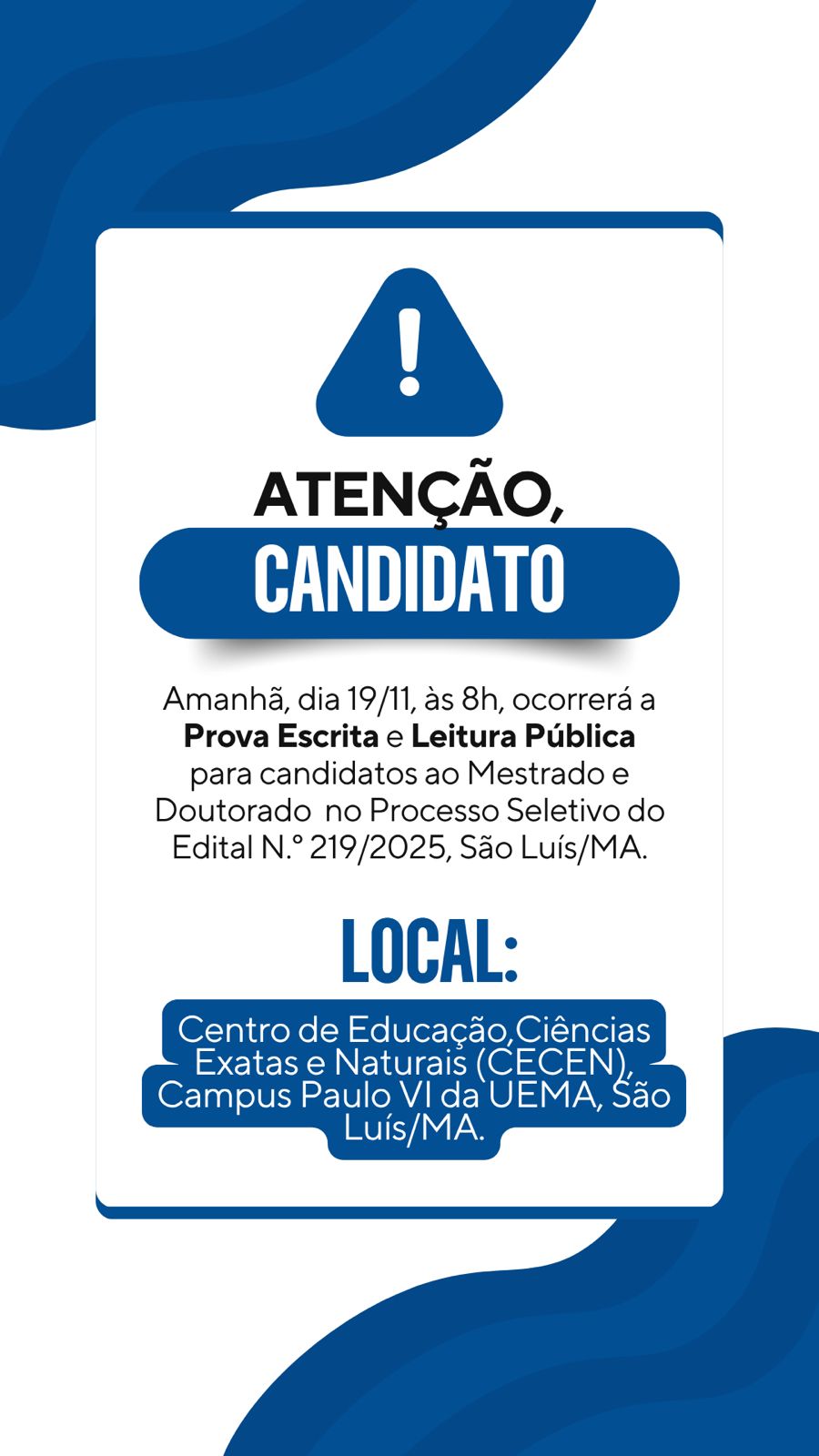 Locais de Prova do Seletivo PPGeo do Edital n.º 219/2025