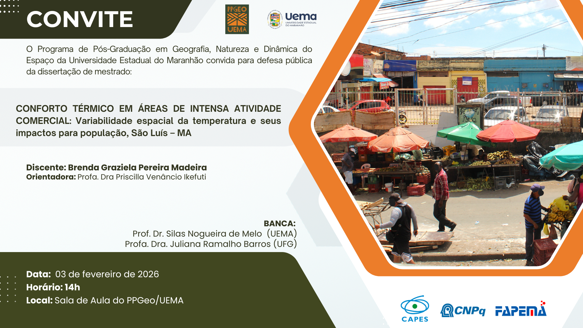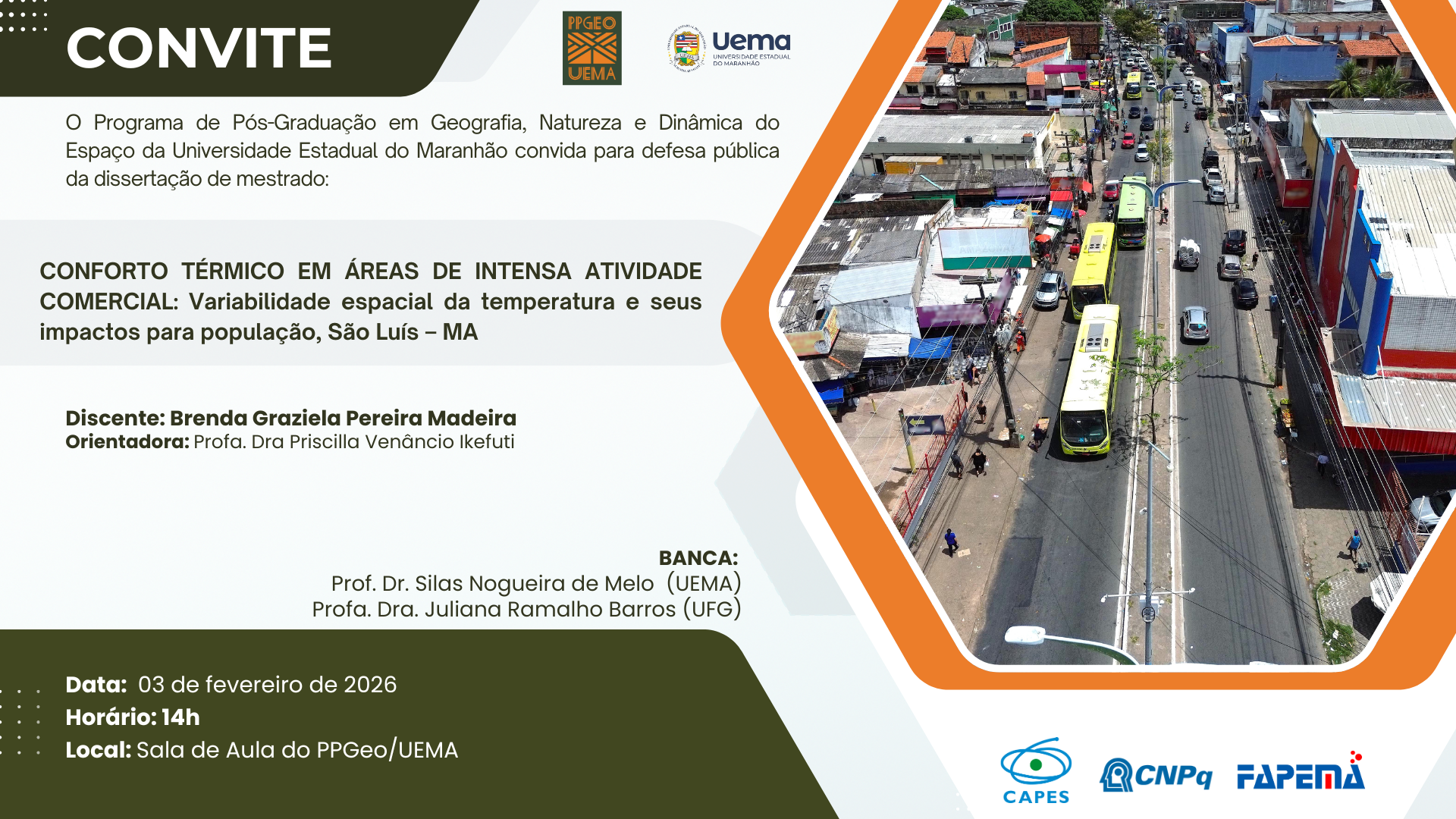 CONVITE PARA DEFESA DE DISSERTAÇÃO DA DISCENTE BRENDA GRAZIELA PEREIRA MADEIRA